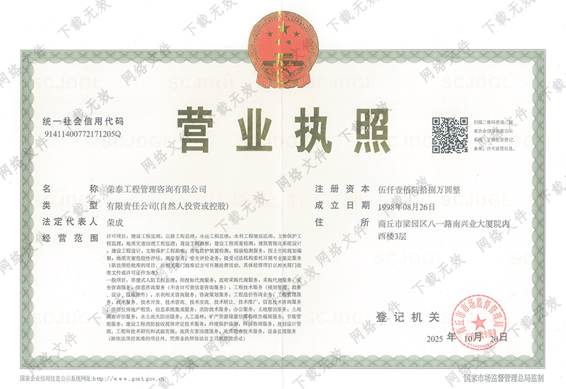 荣泰工程管理咨询有限公司是中国建设监理协会会员、河南省建设监理协会理事单位、河南省建设工程招投标协会常务理事单位、河南省人防协会理事单位河南省工程咨询协会会员、商丘市建筑业协会常务理事单位。